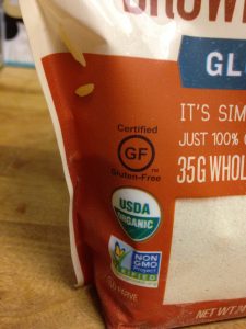 上:授乳中クッキーを焼いていた時に使っていた玄米粉のパッケージのGF表示。