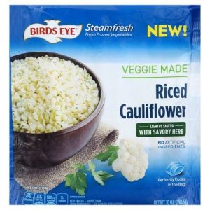私は冷凍のものを常備していて、毎日のようにカリフラワーライスを食べています。ブランドによっては、水分が残っていてべちゃべちゃしているものもあるので、水分を十分に切れているのを確認して使うと良いと思います。味つけを濃いめにすると、カリフラワーのにおいも感じなくなり、6歳の息子もごはんと思って食べるほど。私はよく普通のチャーハンやナンプラーとエビでタイ風チャーハン、カレーや巻き寿司などを作ります。