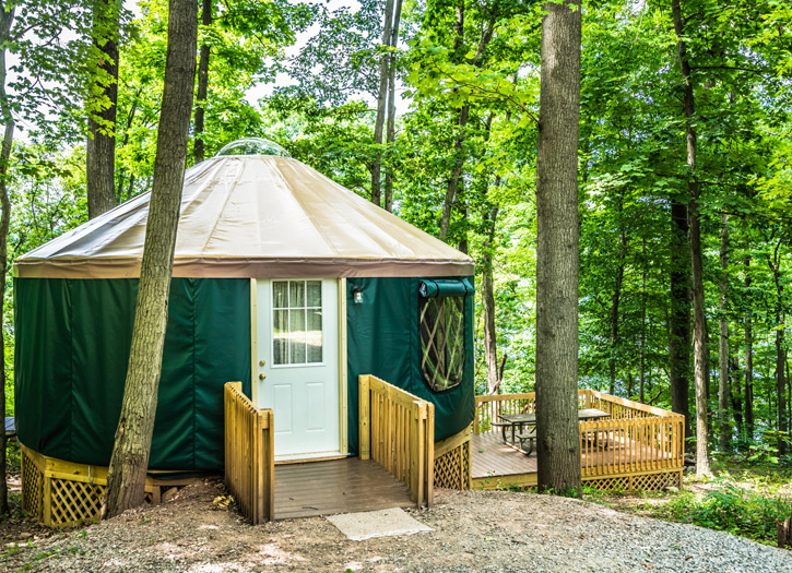 NYCから車で2時間30分。この公園にはユルト(Yurt)と呼ばれるモンゴルの遊牧民の移動式住居のような、居心地の良いテントが建てられており、キャンプ初心者でも安心して宿泊できます。テントの中にはレンジや二段ベットがあり5人まで利用可能。また、このテントは園内120あるキャンプサイトに2つしかないので早めの予約が必要です。キャンプ場は Lackawanna Lake に面しており、ボートや釣り、泳ぐこともできアクティビティも充実。