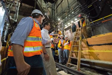 メトロポリタン交通局のスポークスマン、アーロン・ドノヴァンによると、クイーンズボロ・プラザ駅の西側のレールの破損が発見されたために起こった遅延だという。10インチのレールが線路の高架線路で折れ、現在原因を特定しているところだ。