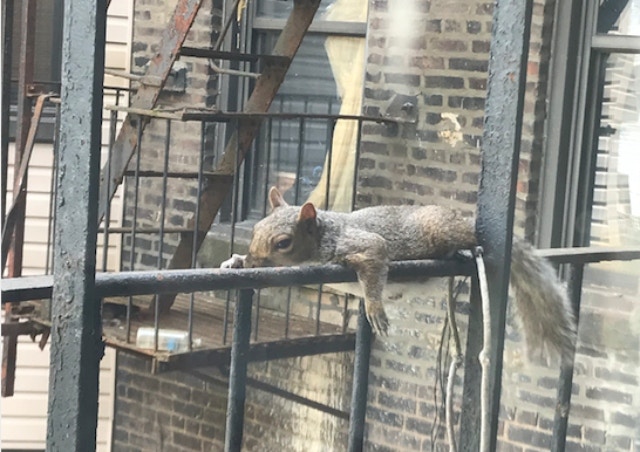 ここ数日、市民の間で話題となっている一匹のリスがいる。その名もHot Squirrel、夏バテリス。件のリスはグリーンポイント在住のジュリー・シュナイダーさんが自宅の非常階段で目撃し、カメラに収めた。