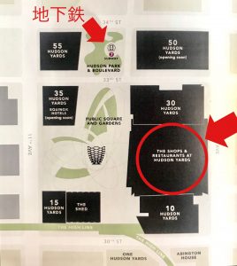 地下鉄7番のHudson Yard駅を降りるとすぐ目の前に見えてきます。また、タイムズスクエアからは車で約10分の距離です。