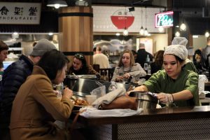 昨年末にオープンした日本食フードホール。おにぎりやラーメン、パン屋などの飲食店があるエリアの隣に、日系スーパーマーケットが入っています。日本人だけでなくニューヨーカーにも大人気で、週末はいつも混み合っています。