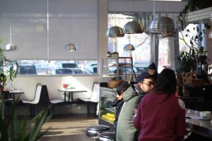 ビルディング2のフードホールには約13店のベンダーが立ち並びます。サンドイッチ、韓国料理、タコスなど種類豊富な中から好きなフードをテイクアウトして、イートインスペースで食べられます。